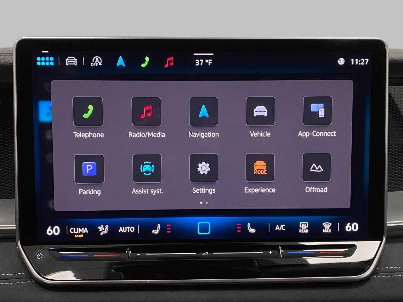- Radio: MIB4 Composition Media Touchscreen AM/FM -inc: WMA/MP3/FLAC player w/USB, 12.9" touchscreen multi-function center display w/backlit sliders, voice control, 6 speakers + center speaker (7 speakers total) sound system, capability for in-vehicle 4G LTE enabled Wi-Fi (cellular data plan required; includes limited trial), capability for VW Car-Net services (capabilities for services vary; requires enrollment or subscription), Bluetooth® connectivity (for compatible devices), SiriusXM w/360L (w/3-month free trial subscription; 360L services require acceptance of Car-Net terms), App-Connect smartphone integration (w/Apple CarPlay, Android Auto and MirrorLink) via USB, wireless App-Connect smartphone integration (for compatible devices) w/multi-phone pairing capability, 45W fast charging (for compatible mobile phones and accessories) via USB in both rows and Qi wireless inductive charger, cooled, up to 15W (for compatible mobile phones and accessories)