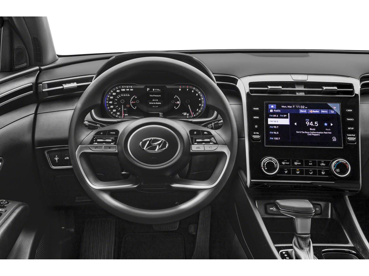- Radio: AM/FM Audio System -inc: low-cost display audio, 8" color touchscreen, 6 speakers, SiriusXM satellite radio w/3-month trial subscription, HD Radio, Blue Link connected car system, Bluetooth®, wireless Apple CarPlay and Android Auto and dual front high-power USB outlets