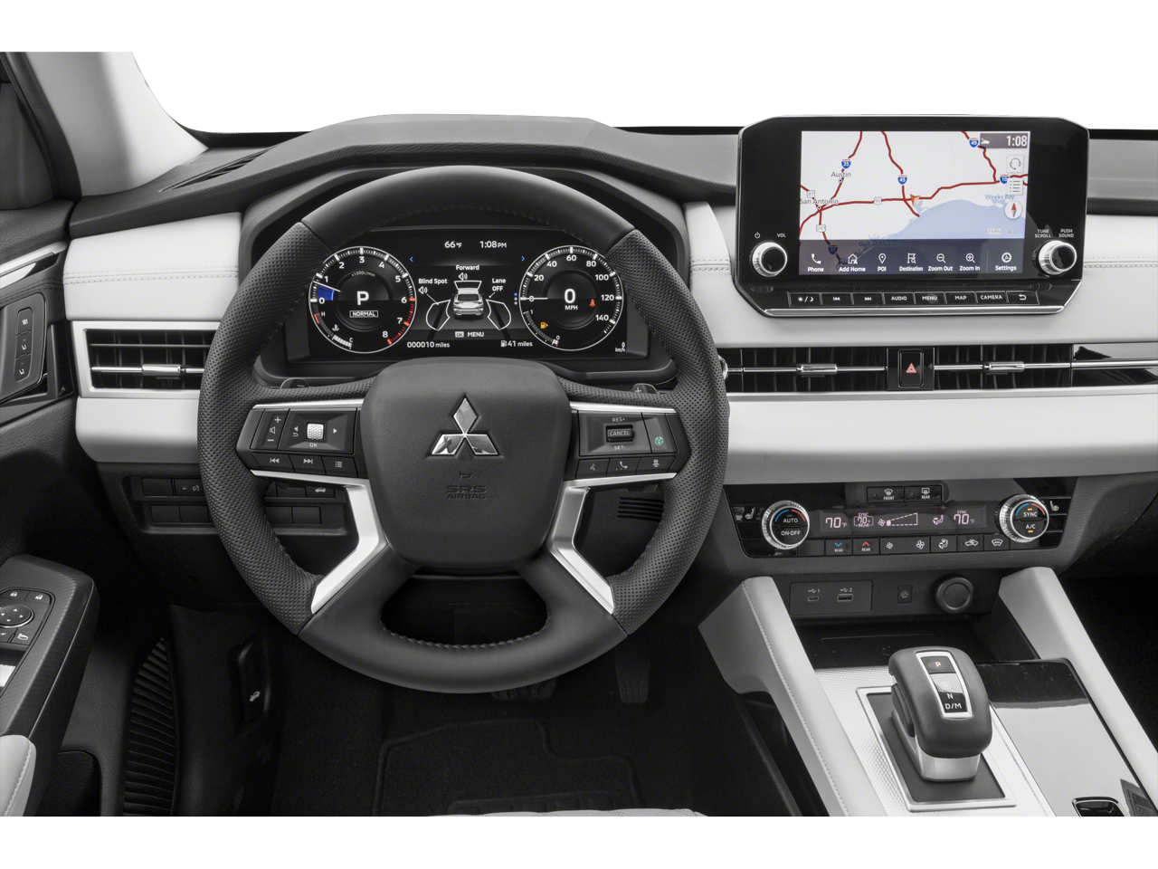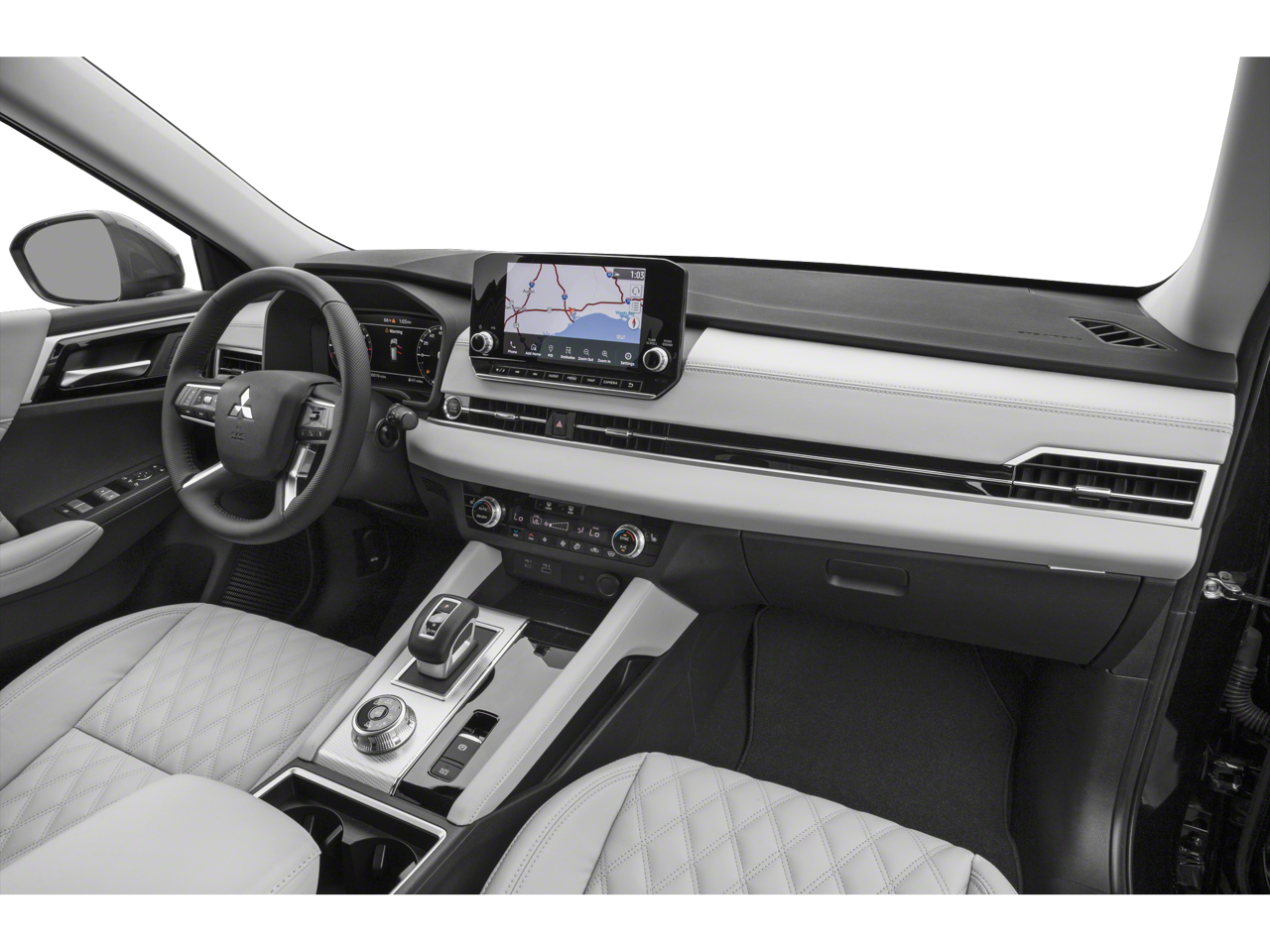 - Radio: AM/FM 9.0" Navigation w/Smartphone Link -inc: 6 speakers, Apple CarPlay, Google Android Auto, SXM all-access and SXM traffic and travel link w/90-day subscription, Mitsubishi Connect, HD Radio, Bluetooth® wireless technology, steering wheel controls for phone, audio and voice recognition and USB ports